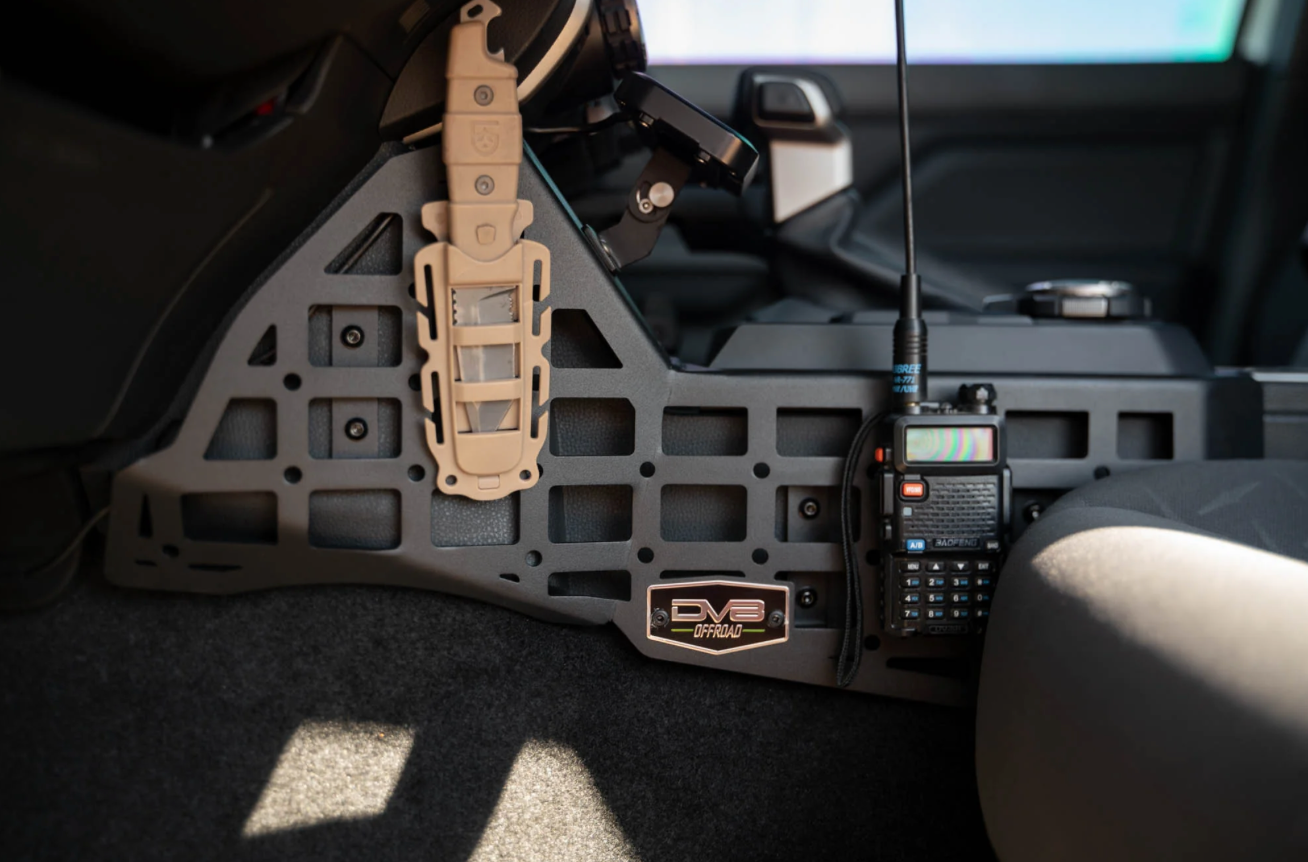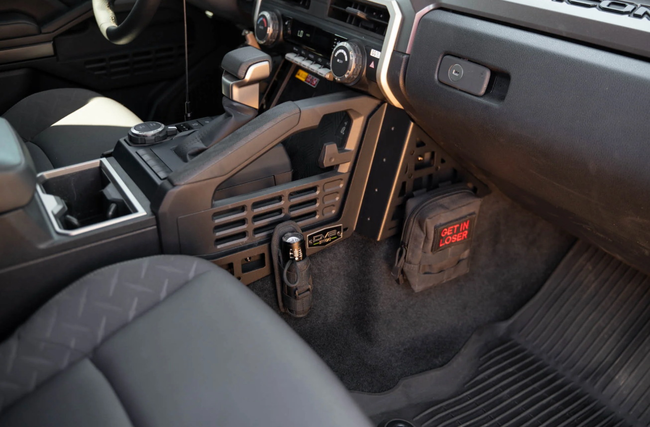 Improve your interior storage capabilities with our 4th Gen Tacoma/ 6th Gen 4Runner Center Console Molle Panels and Device Mount. You can mount multi-tools, med kits, sheaths, holsters, and other molle accessories to the driver and passenger side panels for quick access to your daily gear. You can also utilizeclip mounts for attaching pouches and other supplies. The tops of the panels are equipped with M5 PEM nuts that are compatible with Ram Diamond Base Mounts, Bulletpoint Mounting Solutions, & the Quad Lock Systems/Base Plates for storing your smartphone, GPS, radio, or tablet in a convenient and accessible location.
