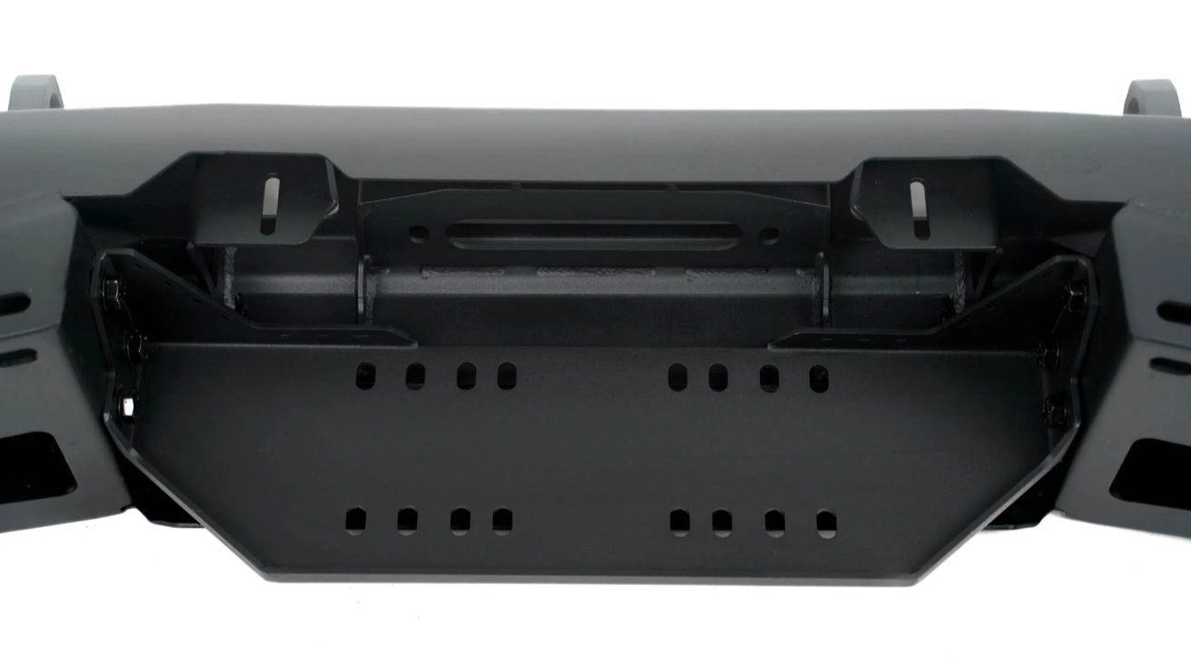 Our Centric Series Tundra Front Bumper has all the features you need in an off-road bumper, in a compact & low-profile package. This bumper was designed to complement factory styling, avoid altering the fenders, and to provide lighting and multiple recovery options. Central to the bumper is a hidden winch mount capable of fitting multiple size winches. Winch access is provided above the bumper, just beneath the grille. Cutaways on either side of the fairlead provide mounting points for 3-inch light pods. If you’re not running pods at these cutaways, they can be used as additional access points for the winch. Below the winch is an inset mounting point for a single row 20-inch light bar to light up the trail ahead. Additional recovery options are afforded by the 1-inch thick D-ring mounts that take ¾-inch D-rings with ⅞-inch shackle pins.