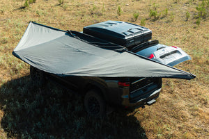 The DeltaWing 180 Degree Freestanding Awning provides full side-vehicle coverage instantly!
